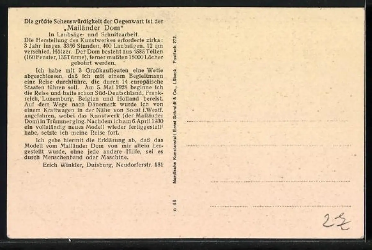 AK Prtrait Erich Winkler, Modellbau Mailänder Dom