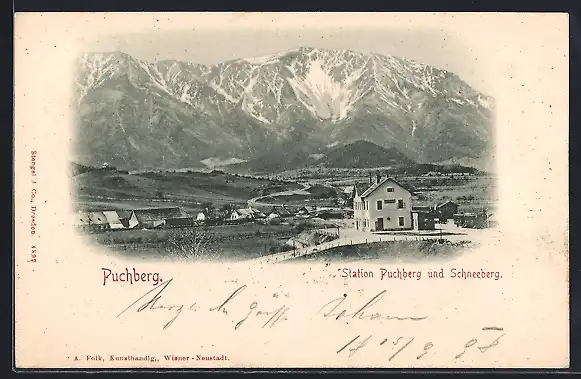 AK Puchberg, Station Puchberg und Schneeberg aus der Vogelschau