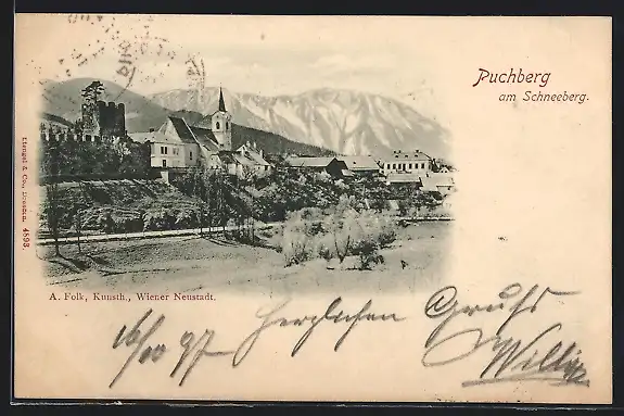 AK Puchberg am Schneeberg, Teilansicht mit Kirche und Burgruine