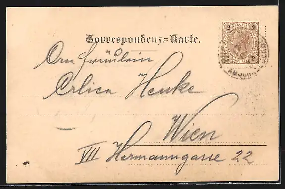 alte Ansichtskarte, gelaufen 1897, Stempelspur, guter Zustand