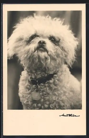 AK Pudel mit Halsband, Portrait