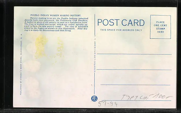 Personenbezogene Daten auf der Rückseite der Karte wurden durch blauen Textmarker unkenntlich gemacht. Die blauen Stellen sind auf die Vorderseite durchgeweicht und wirken sich negativ auf das Postkartenfoto aus