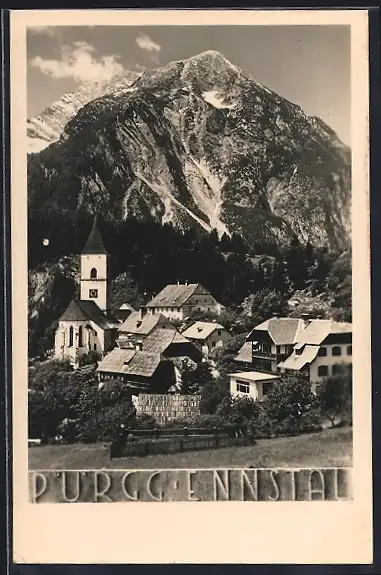 AK Pürgg /Ennstal, Ortsansicht mit Bergpanorama