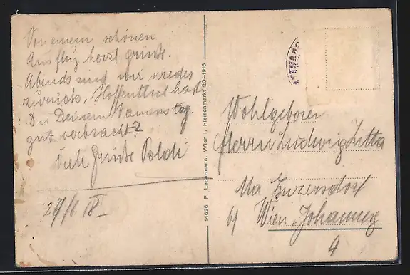 alte Ansichtskarte, gelaufen, Briefmarke entfernt, Bugspuren oben re., guter Zustand