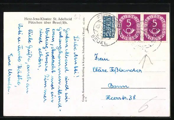 AK Pützchen über Beuel /Rh., Herz-Jesu-Kloster St. Adelheid