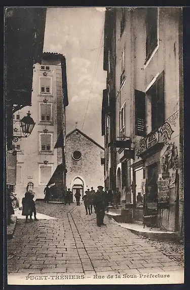 AK Puget-Théniers, Rue de la Sous-Préfecture avec vue sur l`église