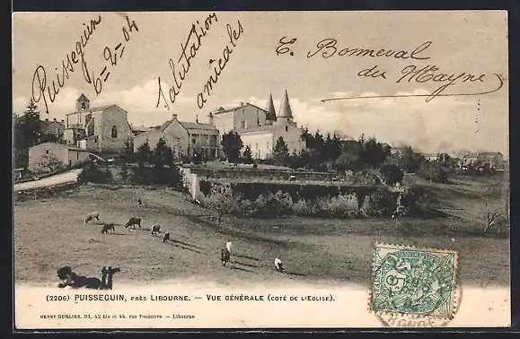 AK Puisseguin, Vue générale du côté de l`église