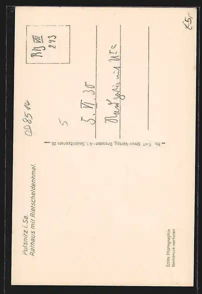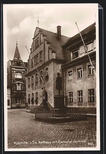 AK Pulsnitz, Rathaus mit Rietscheldenkmal
