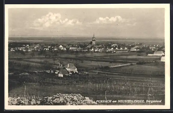 AK Purbach a. Neusiedlersee, Fernsicht der Ortschaft