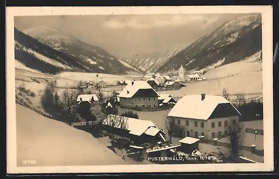 AK Pusterwald /Stmk., Ortsansicht mit Kirche im tiefen Schnee
