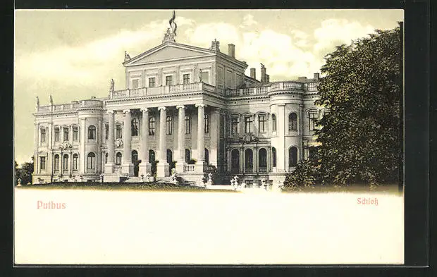 Personenbezogene Daten auf der Rückseite der Karte wurden durch blauen Textmarker unkenntlich gemacht. Die blauen Stellen sind auf die Vorderseite durchgeweicht und wirken sich negativ auf das Postkartenfoto aus