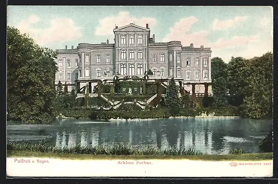 AK Putbus a. Rügen, Schlossteich und das Schloss Putbus