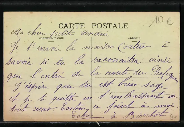 Personenbezogene Daten auf der Rückseite der Karte wurden durch blauen Textmarker unkenntlich gemacht. Die blauen Stellen sind auf die Vorderseite durchgeweicht und wirken sich negativ auf das Postkartenfoto aus