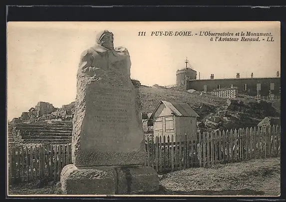 AK Puy-de-Dome, L`Observatoire et le Monument à l`Aviateur Renaud