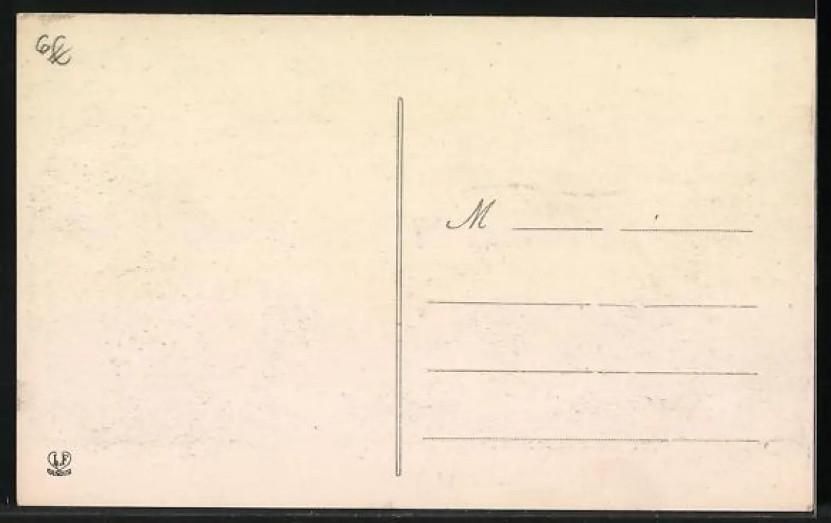 Personenbezogene Daten auf der Rückseite der Karte wurden durch blauen Textmarker unkenntlich gemacht. Die blauen Stellen sind auf die Vorderseite durchgeweicht und wirken sich negativ auf das Postkartenfoto aus