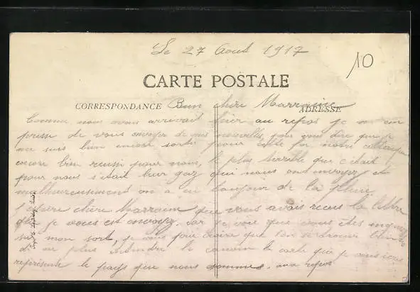 Personenbezogene Daten auf der Rückseite der Karte wurden durch blauen Textmarker unkenntlich gemacht. Die blauen Stellen sind auf die Vorderseite durchgeweicht und wirken sich negativ auf das Postkartenfoto aus