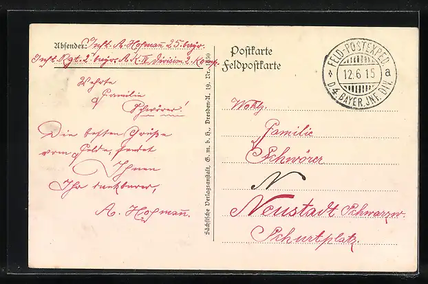 alte Ansichtskarte, gelaufen 1915, guter Zustand