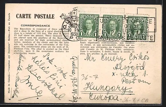 AK Quebec, Eucharistic Congress 1938, The Repository
