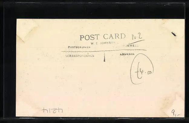 Personenbezogene Daten auf der Rückseite der Karte wurden durch blauen Textmarker unkenntlich gemacht. Die blauen Stellen sind auf die Vorderseite durchgeweicht und wirken sich negativ auf das Postkartenfoto aus