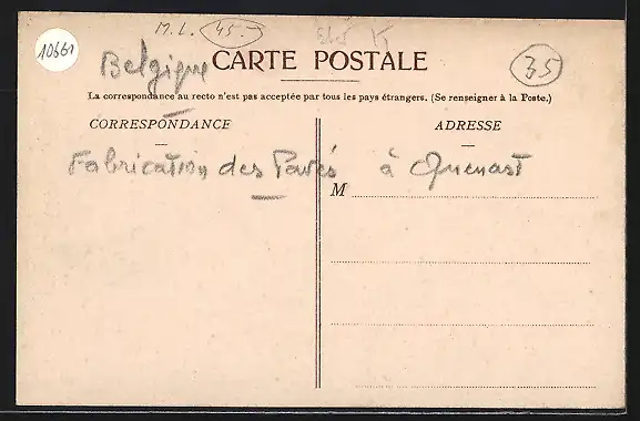 Personenbezogene Daten auf der Rückseite der Karte wurden durch blauen Textmarker unkenntlich gemacht. Die blauen Stellen sind auf die Vorderseite durchgeweicht und wirken sich negativ auf das Postkartenfoto aus