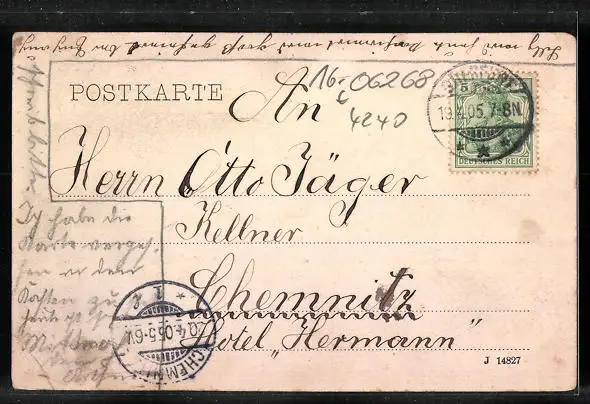alte Ansichtskarte, gelaufen 1905, Eckknicke rechts oben und rechts unten, guter Zustand