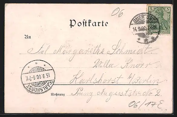alte Ansichtskarte, gelaufen 1900, guter Zustand