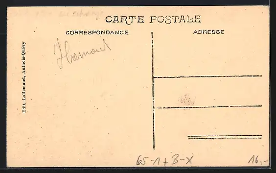 Personenbezogene Daten auf der Rückseite der Karte wurden durch blauen Textmarker unkenntlich gemacht. Die blauen Stellen sind auf die Vorderseite durchgeweicht und wirken sich negativ auf das Postkartenfoto aus