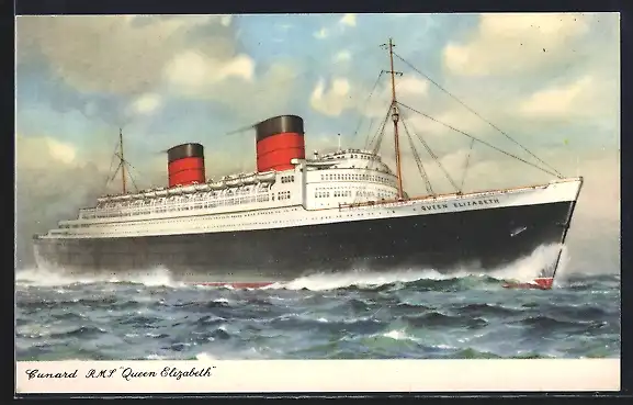 AK R. M. S. Queen Elizabeth, Passagierschiff in voller Fahrt