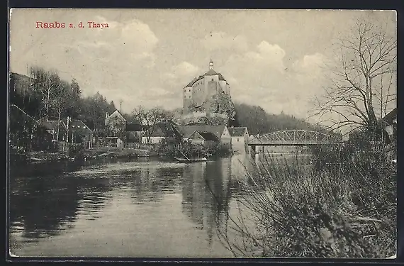AK Raabs a. d. Thaya, Uferpartie mit Schloss