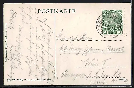 alte Ansichtskarte, gelaufen 1908, guter Zustand
