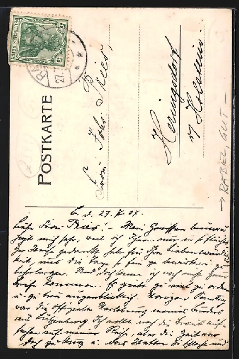 alte Ansichtskarte, gelaufen, Abriebspur unten