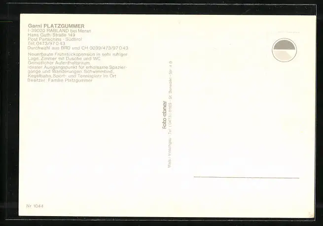 AK Rabland bei Meran, Garni Platzgummer mit Garten