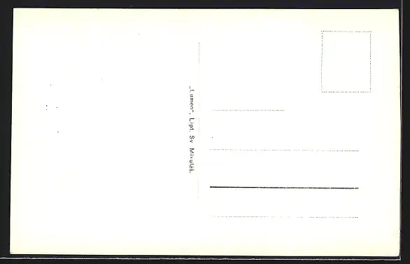 Personenbezogene Daten auf der Rückseite der Karte wurden durch blauen Textmarker unkenntlich gemacht. Die blauen Stellen sind auf die Vorderseite durchgeweicht und wirken sich negativ auf das Postkartenfoto aus