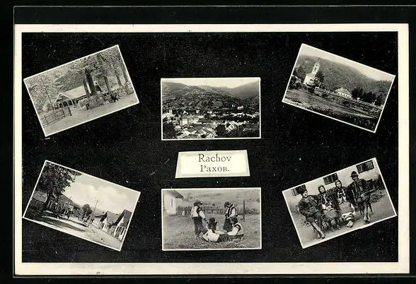 AK Rachov, Ortspartie, Strassenpartie, Kinder in Tracht
