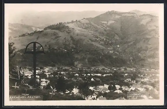 AK Rachovo, Ortsansicht mit Berglandschaft