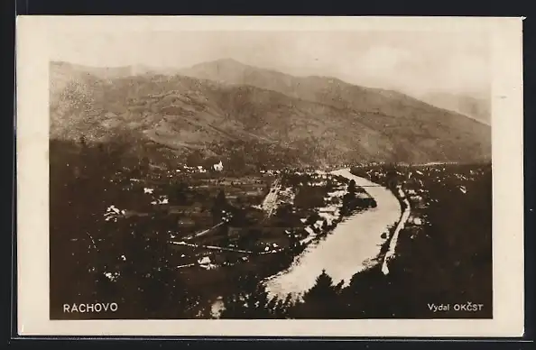 AK Rachovo, Totalansicht mit Gebirgspanorama