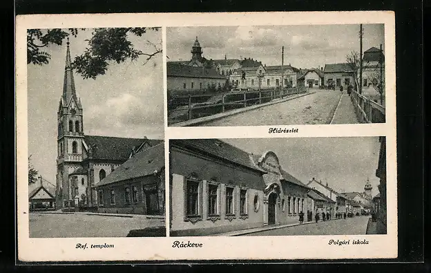 AK Ráckeve, Ref. templom, Hidrészlet, Polgári iskola