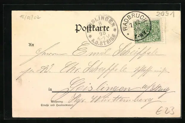 alte Ansichtskarte, gelaufen 1898, Eckknick re. oben, guter Zustand