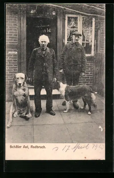 AK Radbruch, Schäfer Ast, Zwei Männer mit zwei Hunden