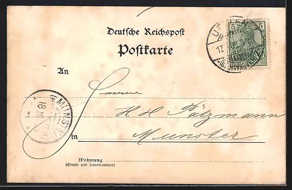 alte Ansichtskarte, gelaufen 1900, guter Zustand