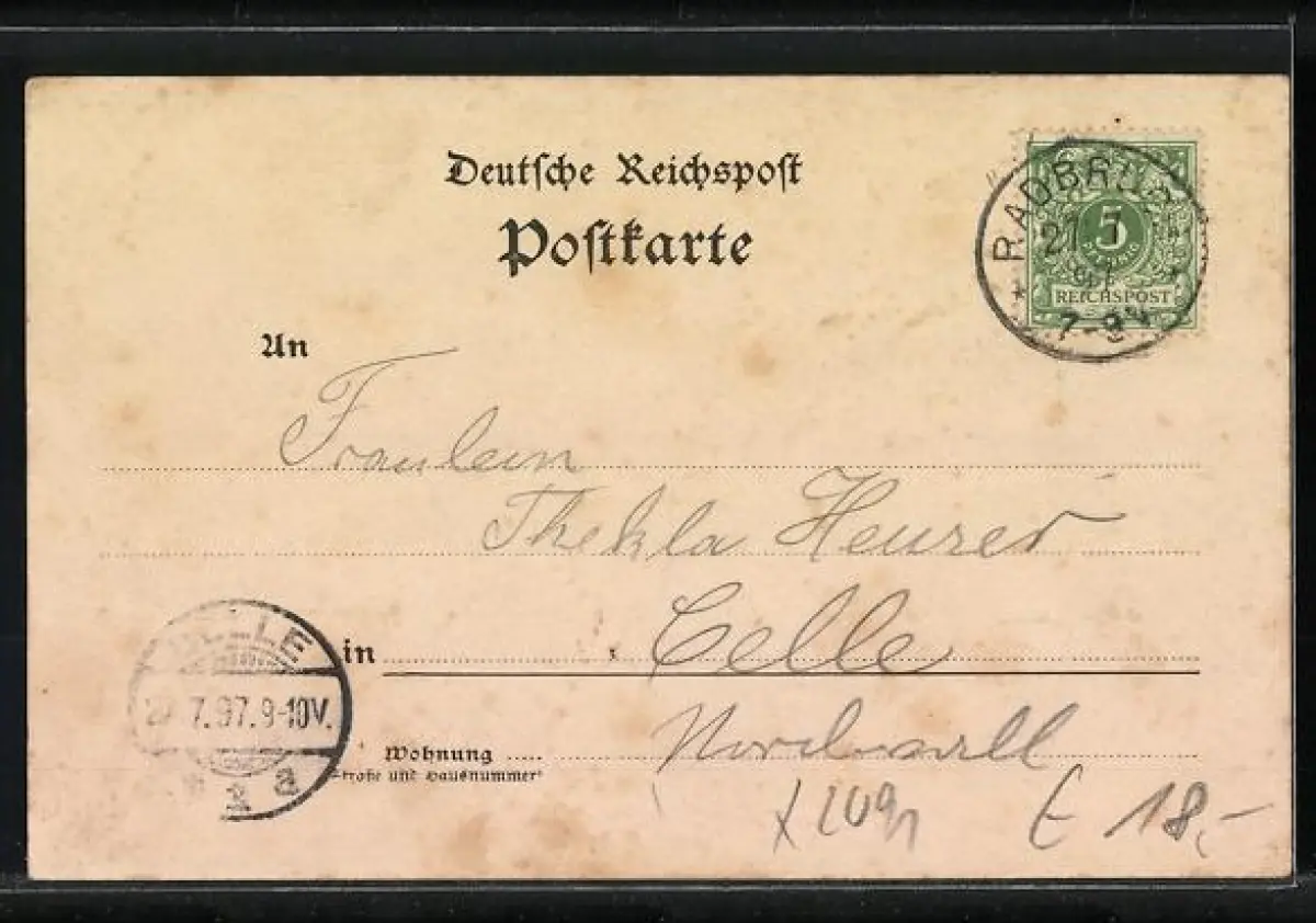 alte Ansichtskarte, gelaufen 1897, Abriebspur re. unten, Bugspur re. mittig, guter Zustand