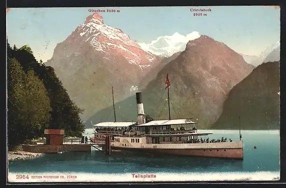 AK Raddampfer Uri fährt von der Tellsplatte ab