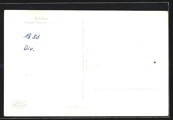 Personenbezogene Daten auf der Rückseite der Karte wurden durch blauen Textmarker unkenntlich gemacht. Die blauen Stellen sind auf die Vorderseite durchgeweicht und wirken sich negativ auf das Postkartenfoto aus