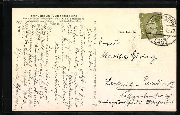 AK Radeberg, Gasthaus Forsthaus Luchsenburg