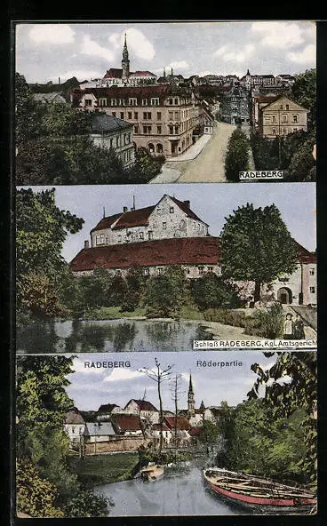 AK Radeberg, Teilansicht, Schloss und Röderpartie