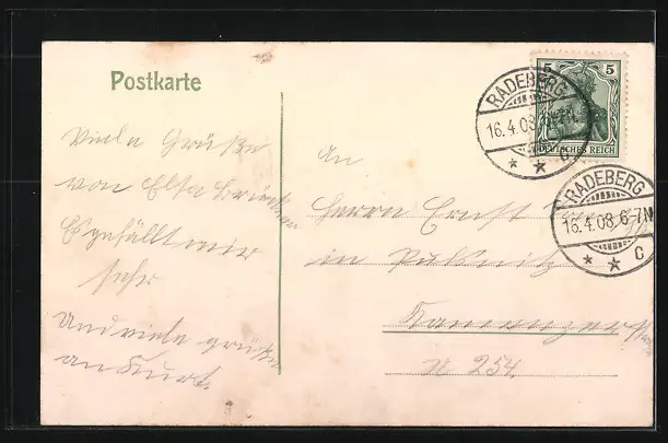 alte Ansichtskarte, gelaufen 1908, guter Zustand
