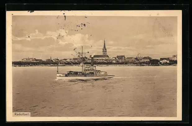 AK Radolfzell, Ortsansicht mit Dampfschiff