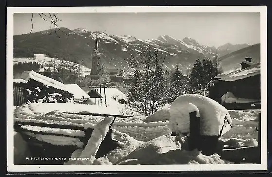 AK Radstadt, Blick zur Kirche im tiefen Winter