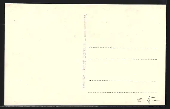 Personenbezogene Daten auf der Rückseite der Karte wurden durch blauen Textmarker unkenntlich gemacht. Die blauen Stellen sind auf die Vorderseite durchgeweicht und wirken sich negativ auf das Postkartenfoto aus