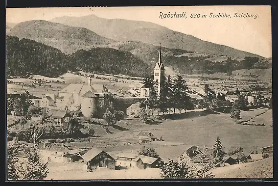 AK Radstadt, Ortspartie mit Kirche